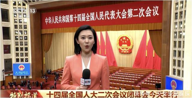 王音棋在十三届寰宇东说念主大二次会议完结式上,连接代表总台新闻中心出目下现场。她身穿和开幕式相似的橘黄色系西服,为两会直播报说念画上了一个圆满的句号。